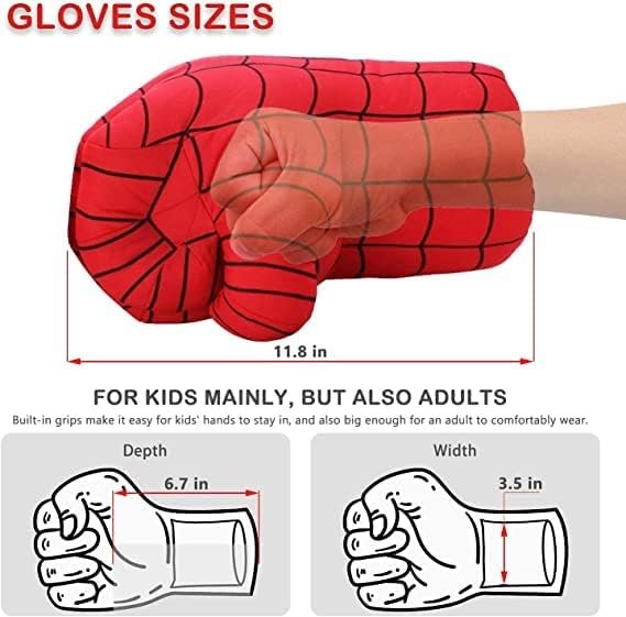 - 【For Little Spiderman Fan’s Hands Gift】The plush stuffed smash-gloves have little handles sewed inside that make it easy for little hands to stay onto, so they don’t fall off kid’s hands. Also the padded gloves are still big enough for kids age 4+ to comfortably wear.